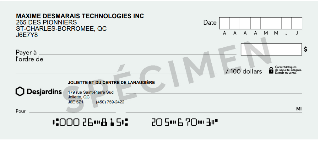 Transfert bancaire (avec spécimen de chèque)