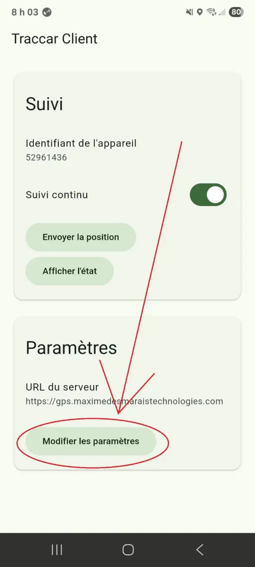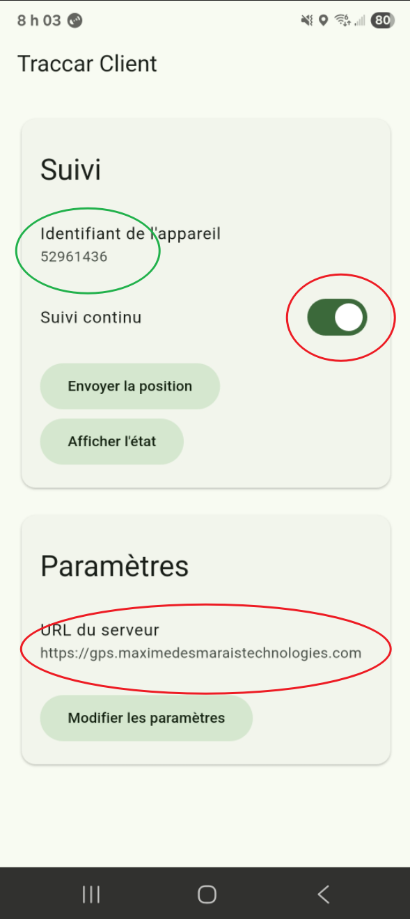 - L'URL du serveur est https://gps.maximedesmaraistechnologies.com